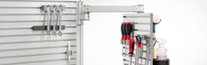 Nella piccola officina così come nella grande azienda: il sistema toolpanel® item si integra senza difficoltà nei tavoli da lavoro o nei carrelli per gli attrezzi.